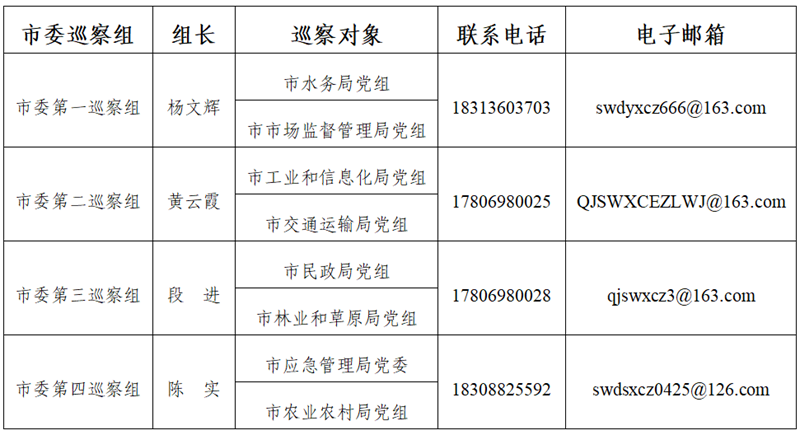 據了解,本輪巡察時間為4月25日至6月8日,巡察期間設專門值班電話、電子郵箱,主要受理反映被巡察黨組織領導班子及其成員、下一級黨組織主要負責人問題的來信來電來訪,重點受理政治紀律、組織紀律、廉潔紀律、群眾紀律、工作紀律和生活紀律以及巡察整改、整治群眾身邊腐敗和不正之風等方面的舉報和反映。其他不屬于巡察受理范圍的信訪問題,將按規定移送有關部門處理。