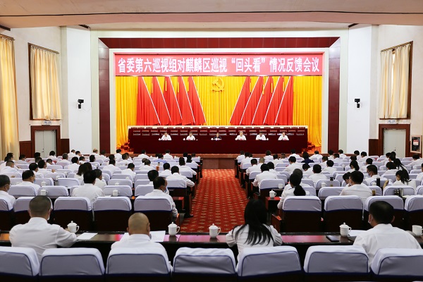 根據(jù)省委統(tǒng)一部署,2021年7月20日,省委第六巡視組分別向麒麟?yún)^(qū)委書記和領導班子反饋了巡視“回頭看”情況。會前,組長孫耕耘向省委常委、曲靖市委書記李文榮通報了巡視“回頭看”情況,省委巡視辦副主任李文俊傳達了省委書記阮成發(fā)在聽取十屆省委第十三輪巡視情況匯報時的講話要求。會上,孫耕耘向麒麟?yún)^(qū)委領導班子反饋了巡視情況,對巡視整改提出明確要求,曲靖市委常委、市紀委書記孟凡兵代表市委表態(tài)并提出具體整改要求,曲靖市委常委、麒麟?yún)^(qū)委書記解天云主持反饋會議并作表態(tài)講話。