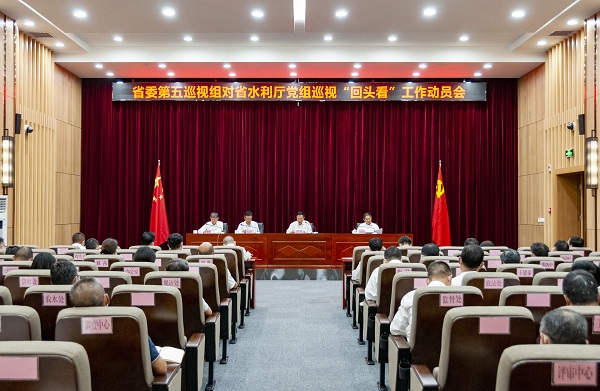 按照省委統一部署,8月13日,省委第五巡視組對省水利廳黨組巡視“回頭看”工作動員會召開。會前,省委第五巡視組組長趙基主持召開與省水利廳黨組書記、廳長胡朝碧的見面溝通會,傳達了省委書記阮成發聽取巡視工作有關情況匯報時的講話要求,通報了巡視“回頭看”工作安排。會上,趙基作了動員講話,提出了要求;胡朝碧主持會議并作表態講話。