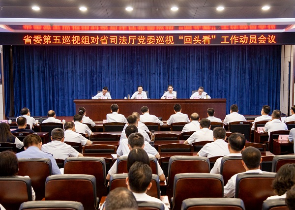 按照省委統(tǒng)一部署,8月13日,省委第五巡視組對省司法廳(含省監(jiān)獄管理局)黨委巡視“回頭看”工作動員會召開。會前,省委第五巡視組組長趙基主持召開與省司法廳黨委書記、廳長商小云的見面溝通會,傳達了省委書記阮成發(fā)聽取巡視工作有關情況匯報時的講話要求,通報了巡視“回頭看”工作安排。會上,趙基作了動員講話,提出了要求;商小云主持會議并作表態(tài)講話。