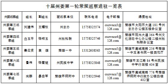 根據(jù)安排,州委5個常規(guī)巡察組將在被巡察單位現(xiàn)場巡察30天左右。巡察期間設(shè)立專門值班電話和電子郵箱,主要受理反映被巡察黨組織領(lǐng)導(dǎo)班子及其成員、下一級黨組織領(lǐng)導(dǎo)班子主要負(fù)責(zé)人和重要崗位領(lǐng)導(dǎo)干部問題的來信來電來訪。重點是關(guān)于違反政治紀(jì)律、組織紀(jì)律、廉潔紀(jì)律、群眾紀(jì)律、工作紀(jì)律和生活紀(jì)律等方面的舉報和反映。其他不屬于巡察受理范圍的信訪問題,將按規(guī)定由被巡察單位和有關(guān)部門認(rèn)真處理。巡察組受理信訪時間截止到2021年12月3日。