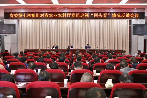 根據(jù)省委統(tǒng)一部署,2021年11月3日,省委第七巡視組向省農(nóng)業(yè)農(nóng)村廳黨組反饋了巡視“回頭看”情況。會前,省委第七巡視組組長唐先勝傳達(dá)了省委書記王寧在主持省委常委會會議聽取十屆省委第十四輪巡視“回頭看”情況匯報(bào)時(shí)的講話要求,向省農(nóng)業(yè)農(nóng)村廳黨組書記謝暉反饋了巡視“回頭看”意見。會上,參會人員集中學(xué)習(xí)了習(xí)近平總書記關(guān)于巡視整改的重要論述及黨規(guī)黨紀(jì)有關(guān)規(guī)定要求;唐先勝向省農(nóng)業(yè)農(nóng)村廳黨組領(lǐng)導(dǎo)班子反饋了巡視情況,對巡視整改提出明確要求;謝暉主持反饋會議并作表態(tài)講話。