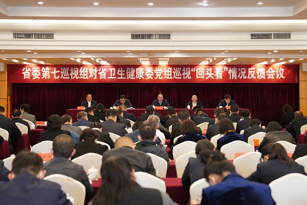 根據省委統一部署,2021年11月4日,省委第七巡視組向省衛生健康委黨組反饋了巡視“回頭看”情況。會前,省委巡視工作領導小組成員、省委組織部分管日常工作的副部長王正英傳達了省委書記王寧在主持省委常委會會議聽取十屆省委第十四輪巡視“回頭看”情況匯報時的講話要求;省委第七巡視組組長唐先勝向省衛生健康委黨組書記許勇剛反饋了巡視“回頭看”意見。會上,參會人員集中學習了習近平總書記關于巡視整改的重要論述及黨規黨紀有關要求;唐先勝向省衛生健康委黨組領導班子反饋了巡視情況;王正英對巡視整改提出明確要求;許勇剛主持反饋會議并作表態講話。