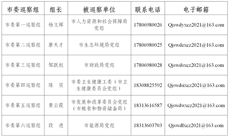 根據(jù)市委統(tǒng)一部署,本輪巡察分別對(duì)市人力資源和社會(huì)保障局黨組、市生態(tài)環(huán)境局、市財(cái)政局、市委衛(wèi)生健康工委(市衛(wèi)生健康委員會(huì))、市能源局黨組開展常規(guī)巡察,對(duì)市發(fā)展和改革委員會(huì)黨組(市糧食和物資儲(chǔ)備局)開展涉糧問(wèn)題專項(xiàng)巡察,并重點(diǎn)了解市市場(chǎng)監(jiān)督管理局、市國(guó)資委等單位黨組織的涉糧工作落實(shí)情況。
