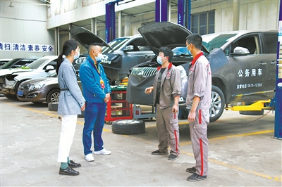 云南省保山市隆陽區(qū)紀委監(jiān)委開展公務用車常態(tài)監(jiān)督,通過實時關聯(lián)比對車輛軌跡信息、加油站充值加油信息、公務用車報修情況等數(shù)據(jù),整治“車輪上的腐敗”問題。圖為該區(qū)紀委監(jiān)委干部向汽車修理廠工人了解本季度公務用車報修相關情況。(施荔瀟 攝)