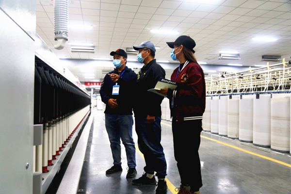 新疆維吾爾自治區阿克蘇地區紀委監委運用“三不”一體推進理念構建“親”“清”政商關系,從狠抓黨員干部作風入手,著力提升職能部門服務意識和服務水平。圖為2022年1月4日,阿克蘇地區紀檢監察干部深入轄區紡織企業,收集企業對職能部門作風建設的意見建議。 呂姍姍 攝