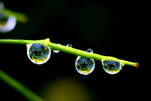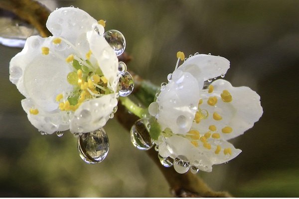 一場春雨過后,水珠凝結在花尖,在陽光的照射下,像是一顆顆晶瑩剔透的水晶球,格外清新潔凈,充滿希望。(王坤 攝)