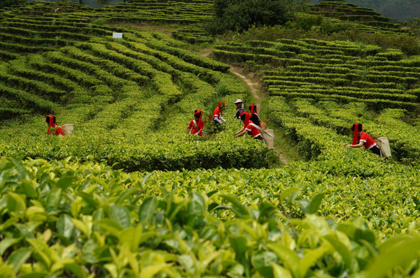 綠春縣大水溝鄉茶園里的哈尼姑娘采茶忙,一片片茶葉成就了群眾的增收夢。(陸萱 攝)