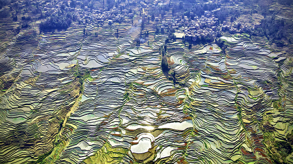 “萬(wàn)物生長(zhǎng)此時(shí),皆清潔而明凈。故謂之清明。”清明至,迎來(lái)春耕春種的大好時(shí)節(jié),層層梯田已逐漸被秧苗鋪滿,片片綠意在陽(yáng)光的映射下,點(diǎn)綴出盎然春意。(李少福 攝)