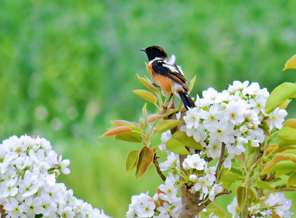 清明時(shí)節(jié),氣候暖和,草木萌發(fā),枝頭朵朵花兒競(jìng)相吐蕊、爭(zhēng)芳斗艷,引來(lái)鳥兒駐足聞香。(馮雪娥 攝)