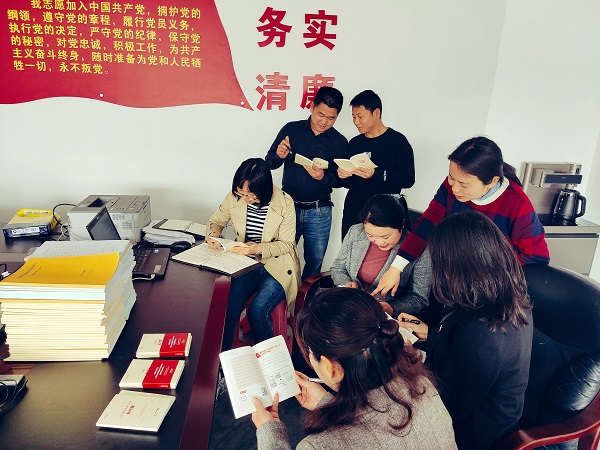 龍江鄉黨員干部認真學習叢書內容。(丁前晨 攝)