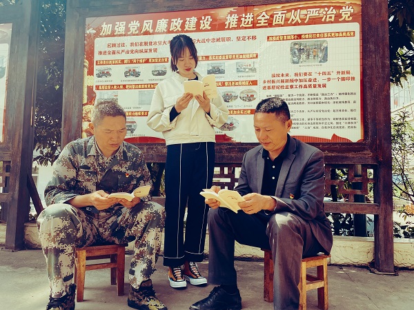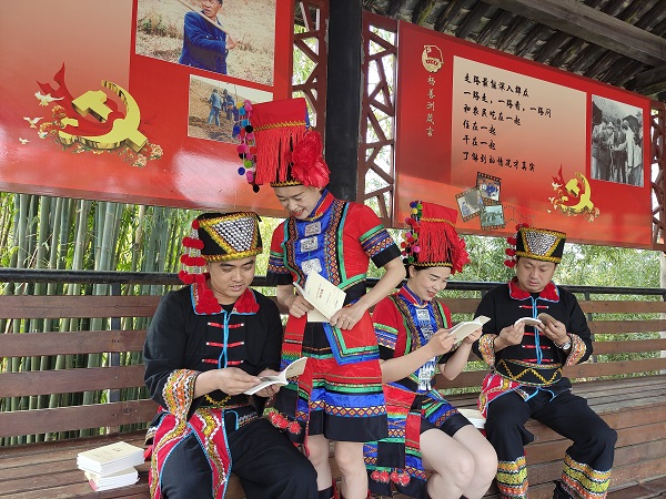 阿昌族群眾學習《云南少數民族廉潔文化知與踐》。(王龍芹 攝)