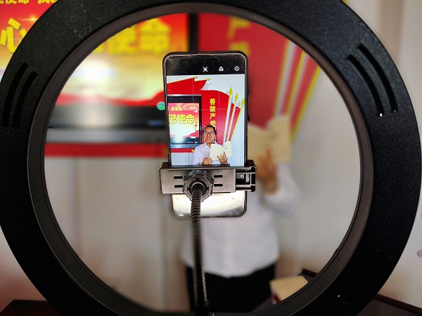 縣紀委監委宣傳部拍攝叢書講解視頻。(王龍芹 攝)