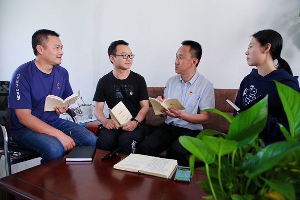 口袋書小巧輕便,內容簡單易懂,在工作間隙,普洱市紀委監委的年輕干部們聚在一起深入研討,將業務學習常態化、輕松化。(王森元 攝)