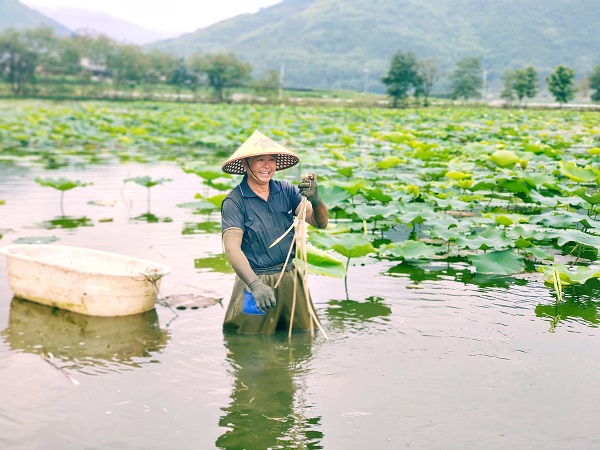 夏至,正是采摘藕芽的時節。在龍陵縣勐糯鎮海頭村,勤勞的藕農正熟練地從荷田“淘”出白嫩的藕芽。(王龍芹 攝)