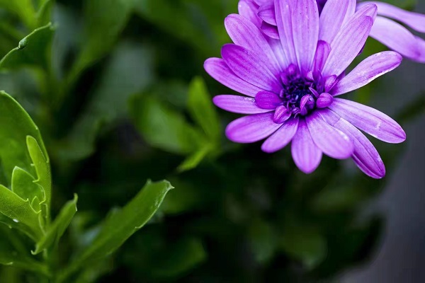 剛下過一場小雨,美麗的藍目菊迎風盛開,與一旁的風景構成了一副雋妙無比的夏景圖。(李恒宇 攝)
