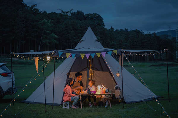 夜里暑氣稍降,爸爸帶著孩子們到野外露營。陪伴是最好的父愛,在盛夏的夜里更顯熾熱和溫馨。(桂金再 攝)