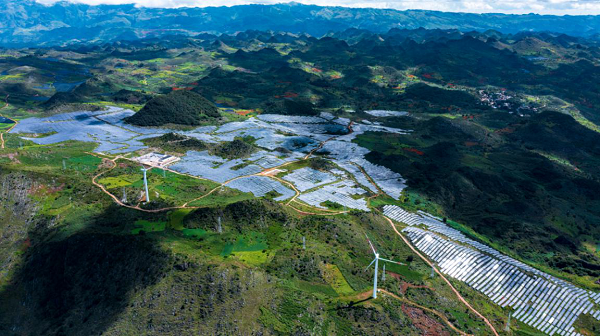 七月的山谷,翠綠疊嶂,太陽把白云的影子打在山間和整齊劃一的光電伏發光板上,明暗之間仿佛一幅大自然的畫作,呈現出云貴高原新農村的獨特風景。(蒙自市紀委監委 李星 攝)