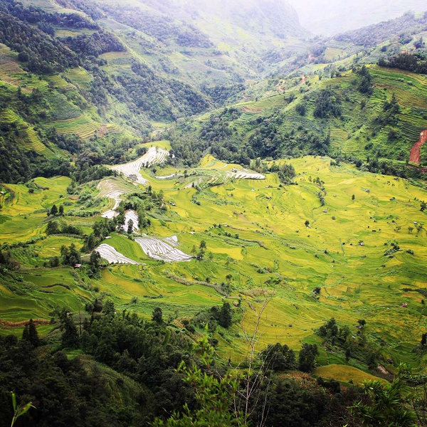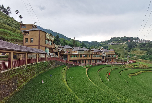 梯田里的稻谷由于栽種時間的差異,成熟度也有差別,從而展現出不一樣的“只此黃綠”色彩,到秋天這里將是一片金黃的豐收景象。(河口縣紀委監委 施佳輝 攝)