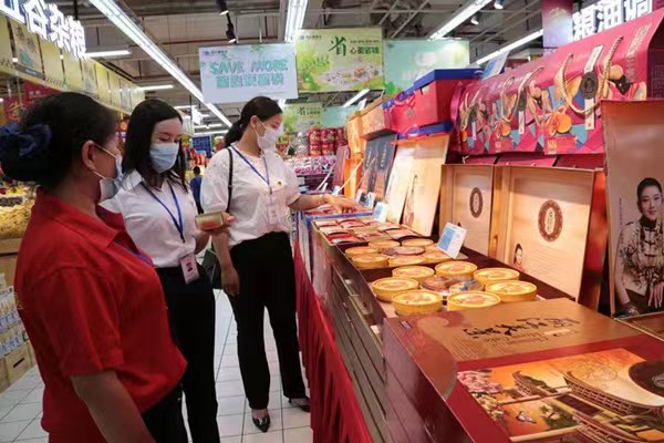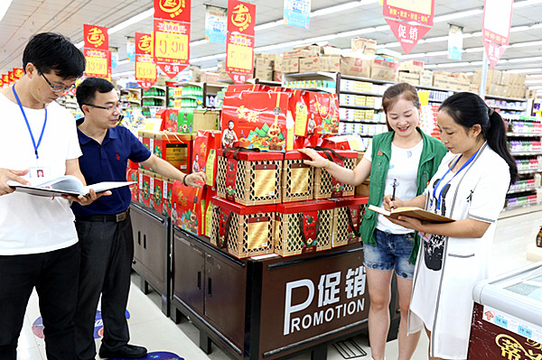 文山市紀(jì)委監(jiān)委與市場(chǎng)監(jiān)管部門組成聯(lián)合監(jiān)督檢查組,對(duì)“天價(jià)月餅”和背后的隱形變異“四風(fēng)”問題進(jìn)行嚴(yán)查。圖為監(jiān)督檢查組在某超市查看月餅價(jià)格。(王銘堅(jiān) 攝)