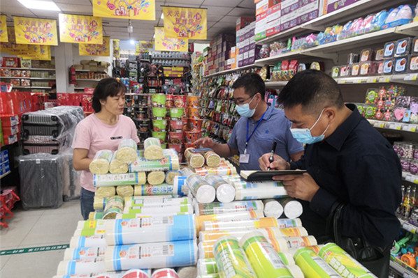 廣南縣紀(jì)委監(jiān)委堅(jiān)持強(qiáng)化監(jiān)督檢查不放松,持續(xù)開展作風(fēng)監(jiān)督檢查,念好“緊箍咒”,馳而不息糾“四風(fēng)”。圖為該縣紀(jì)檢監(jiān)察干部深入轄區(qū)超市開展監(jiān)督檢查。(向建洪 攝)