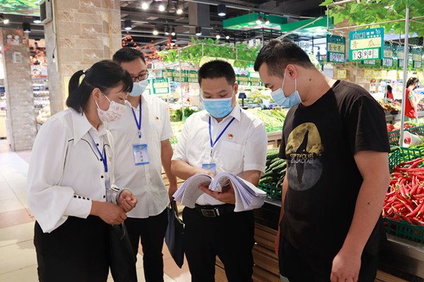 富寧縣紀(jì)委監(jiān)委緊盯作風(fēng)革命效能革命,派出監(jiān)督檢查組以全面檢查、重點(diǎn)抽查、同步聯(lián)動(dòng)等形式,先后來到超市、農(nóng)貿(mào)市場(chǎng)等地,抽查是否存在公職人員違規(guī)公款購(gòu)買月餅、私人訂制禮盒等行為。圖為該縣紀(jì)委監(jiān)委深入超市向工作人員了解有關(guān)情況。(李妹方 攝)