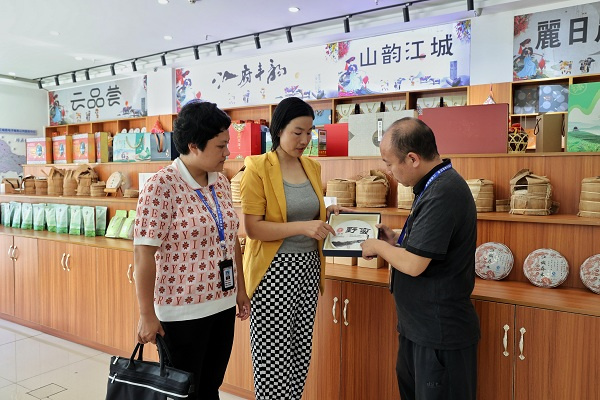 江城縣紀委監委走訪土特產銷售點,通過調監控、查票據等方式,嚴查違規用公款購買土特產進行消費、送禮等問題。(沈雷 攝)