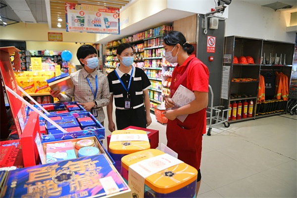 瀾滄縣紀委監委深入商場、超市、月餅生產企業開展監督檢查,了解月餅價格檔次、進貨票據、銷售記錄等情況,嚴防“天價月餅”問題成為節日腐敗、隱形腐敗的“潤滑劑”,狠剎背后的送禮之風、奢靡之風。(罕珊 攝)