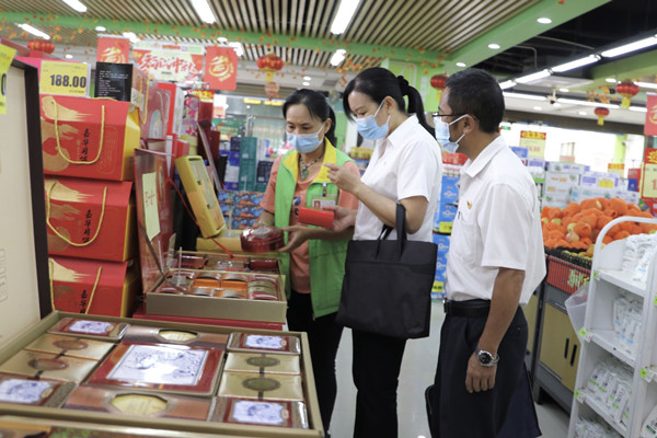雙江縣紀委監委深入超市開展監督檢查,了解月餅價格、檔次等情況,狠剎背后的送禮之風、奢靡之風。(羅英芳 攝)