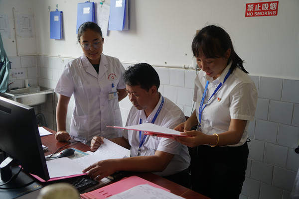 滄源縣紀委監委到縣中醫佤醫醫院檢查是否有違規發放福利津貼、接受服務對象財物及宴請等問題進行重點監督檢查,持之以恒正風肅紀,營造風清氣正節日氛圍。(田思 攝)