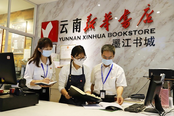 墨江縣紀(jì)委監(jiān)委通過(guò)實(shí)地走訪書(shū)店書(shū)城,向工作人員了解中小學(xué)教輔資料售賣情況,著力查找是否存在收取回扣、違背自愿原則強(qiáng)制訂購(gòu)教輔材料等侵害群眾利益的行為。(歐陽(yáng)明 攝)