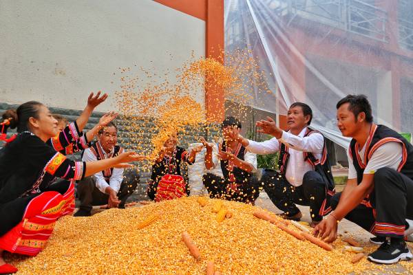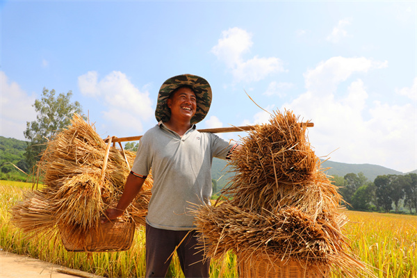 正是稻谷豐收的時候,文山市秉烈鄉(xiāng)下舍舍村的村民們借著好天氣正在搶收搶運稻谷。(王銘堅 攝)