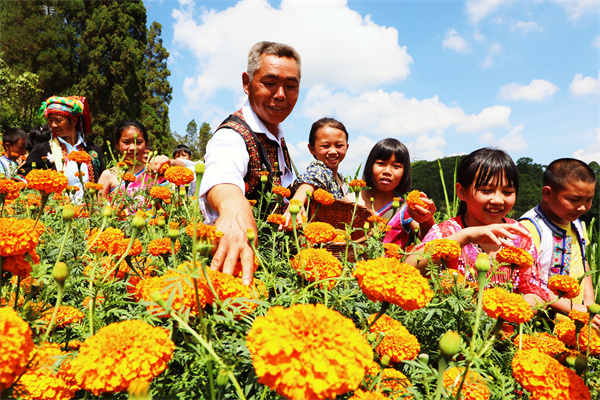 文山市東山鄉(xiāng)在農民豐收節(jié)來臨之際,由老師帶著學生走進田間地頭,手把手地教他們采摘豐收的果實,體會勞動的快樂。(王銘堅 攝)