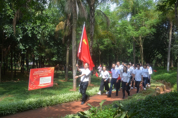 開遠(yuǎn)市在鳳凰山景區(qū)景觀步道設(shè)置紅軍長(zhǎng)征路線“打卡點(diǎn)”和紅軍廉潔故事展板,讓游客在欣賞如畫美景的同時(shí)一路追尋紅色足跡。圖為該市黨員干部到景區(qū)開展主題黨日活動(dòng),打卡光榮的“紅廉”歲月。(馬子茵 攝)