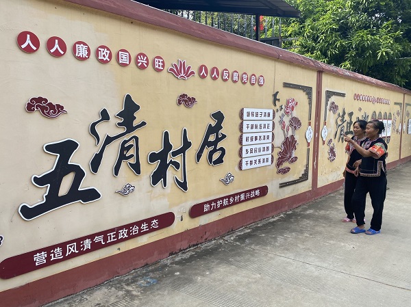 紅河縣把廉潔元素融入鄉(xiāng)村旅游建設(shè)中,以“清風(fēng)廉韻、和諧勐龍”為主題,在迤薩鎮(zhèn)勐龍街村寨沿路畫出了一條“廉政文化街”,讓村民和游客在潛移默化中受到廉潔文化熏陶。(師燕芳 攝)
