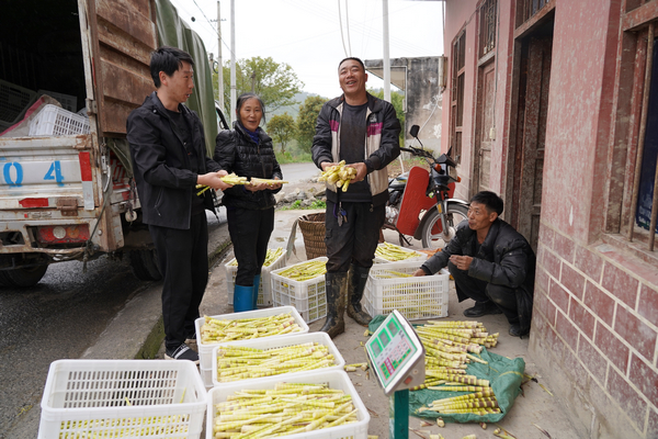 彝良縣紀(jì)委監(jiān)委緊扣該縣構(gòu)建“4+N”高原特色農(nóng)業(yè)產(chǎn)業(yè)發(fā)展體系目標(biāo),深入各竹筍種植鄉(xiāng)鎮(zhèn)了解今年竹筍產(chǎn)業(yè)各項優(yōu)惠政策和幫扶措施落實情況。圖為該縣筍農(nóng)向紀(jì)檢監(jiān)察干部展示自家優(yōu)質(zhì)竹筍。