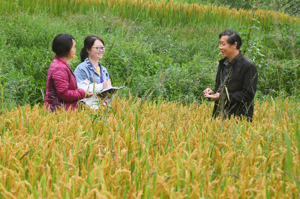 糧食生產(chǎn)直接關(guān)系農(nóng)民群眾的“糧袋子”和“錢袋子”。圖為綏江縣紀(jì)檢監(jiān)察干部走進田間詳細(xì)了解今年水稻生長、收割情況,督促有關(guān)部門做好技術(shù)指導(dǎo)、政策宣傳等工作,以精準(zhǔn)監(jiān)督護航糧食安全。