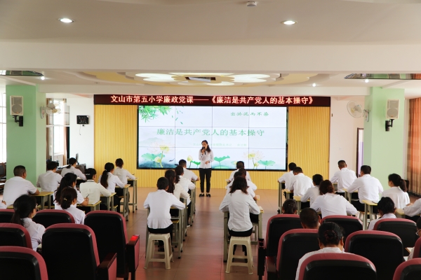 文山市讓廉潔文化成為教師教書育人、立德樹人的重要抓手,成為廉政黨課的“工具書”。圖為文山市第五小學(xué)正在上廉政黨課。(王銘堅 攝)