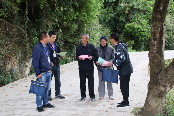 丘北縣紀委監委整合監督力量推動監督下沉,聚焦重點項目、產業發展開展精準監督、跟進監督、全程監督,為鄉村振興保駕護航。圖為該縣紀檢監察干部到錦屏鎮清平村走訪群眾,收集意見建議。(王靈惠 攝)