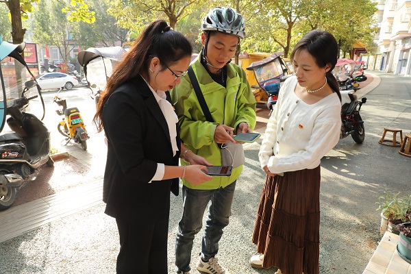 金平縣通過在辦事服務大廳、黨群服務中心發放宣傳資料,走街串巷宣傳講解“監督一點通”使用方法等方式,多渠道開展平臺宣傳推廣工作。(金平縣紀委監委 劉連旺 攝)