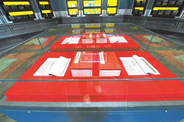 圖為在中國國家版本館中央總館“真理之光——馬克思主義中國化時(shí)代化經(jīng)典版本展”中,展出的《習(xí)近平談治國理政》第一卷至第四卷。(圖片來源:人民視覺)