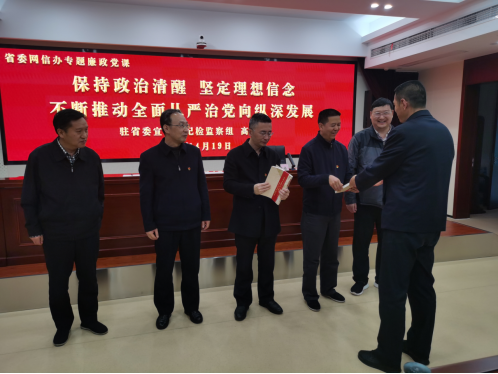 授一堂廉政黨課,奏響“守初心曲”。駐省委宣傳部紀檢監察組主要負責人以“保持政治清醒 堅定理想信念 不斷推動全面從嚴治黨向縱深發展”為題,圍繞全省紀檢監察工作形勢、堅定理想信念、推動黨風廉政責任落到實處三個方面,緊扣“形勢、信念和責任”主線,緊密結合省委網信辦工作實際,講授了一堂生動的廉政黨課,教育引導全體黨員干部修好黨性、心性、品行,錘煉優良作風,堅定理想信念、堅守初心使命,守好共產黨員的精神家園。