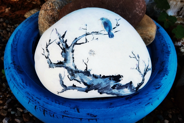 “這些石頭大部分都是村民自發(fā)地從河道里撿來的。”自從村民聽說村委會要組織人在石頭上畫畫,需要好看的石頭后,就陸續(xù)送來一些石頭,將原本靜靜躺在河道中的石頭引用到清廉村居建設當中來,讓石頭在畫中動起來、在字中活起來。
