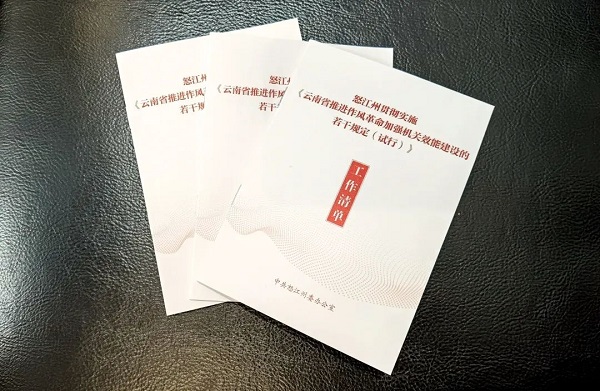 近日,怒江州委印發5000本《怒江州貫徹實施〈云南省推進作風革命加強機關效能建設的若干規定(試行)〉工作清單》口袋書,并將口袋書發到各級各部門干部手中,督促大家時刻對照工作清單,進一步改進作風、服務基層、狠抓落實、提質增效,在工作的全過程、各方面貫徹落實好作風革命效能革命的要求。