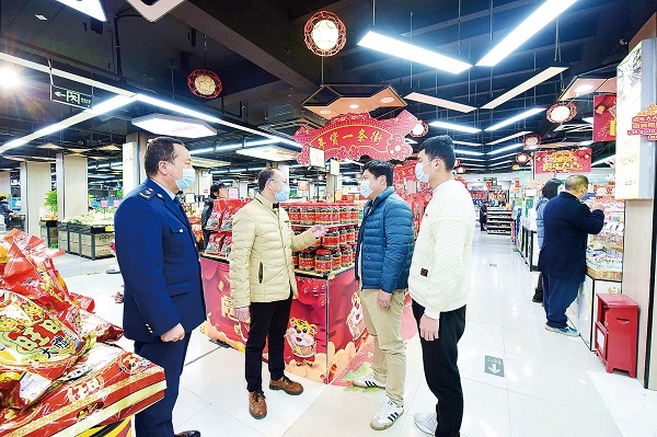 臨近春節,福建省永泰縣紀委監委聯合有關部門成立專項督查組,到轄區內酒店、商超、特產店等地開展監督檢查,深挖隱形變異“四風”問題,持續凈化節日風氣。圖為日前,該縣紀委監委“四風”專項督查組在某超市了解相關情況。葉靜文 攝