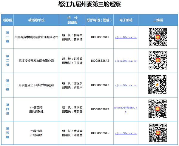 此次巡察共派出4個巡察組,對州國有資本投資運營管理有限公司、怒江投資開發集團有限公司、州信訪局、州供銷聯社、州科技局、州社科聯等6個州級部門和州屬國有企業黨組織開展常規巡察,同時派出1個巡察組開展全省上下聯動專項巡察。