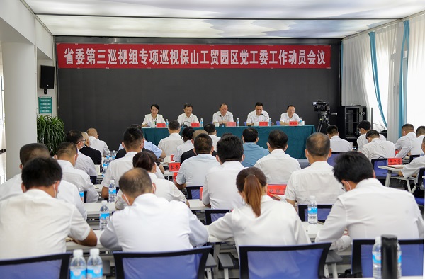 按照省委統一部署,7月29日上午,省委第三巡視組專項巡視保山產業園區黨工委工作動員會召開。會前,巡視組組長程猛主持召開與保山產業園區黨工委書記段忠華的見面溝通會,通報了巡視任務,提出了工作要求;巡視組副組長李興榮傳達了省委書記王寧聽取巡視工作有關情況匯報時的講話要求。會上,程猛作了動員講話;李興榮通報了干擾、對抗巡視的一些典型問題;段忠華主持會議并表態講話。
