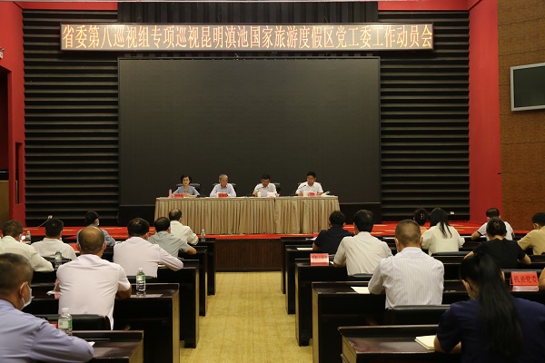 按照省委統一部署,7月27日,省委第八巡視組專項巡視滇池度假區黨工委工作動員會召開。會前,巡視組組長孟端平主持召開與滇池度假區黨工委書記李紹俊的見面溝通會,通報了巡視任務,提出了工作要求;巡視組副組長楊春華傳達了省委書記王寧聽取巡視工作有關情況匯報時的講話要求。會上,孟端平作了動員講話;楊春華通報了干擾、對抗巡視的一些典型問題;李紹俊主持會議并表態講話。