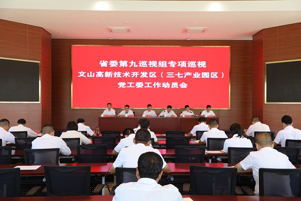 按照省委統一部署,7月29日,省委第九巡視組專項巡視文山高新區黨工委工作動員會召開。會前,巡視組組長沈光善主持召開與文山高新區黨工委書記鄭周波的見面溝通會,通報了巡視任務,提出了工作要求;巡視組副組長柯順昌傳達了省委書記王寧聽取巡視工作有關情況匯報時的講話要求。會上,沈光善作了動員講話;柯順昌通報了干擾、對抗巡視的一些典型問題;鄭周波主持會議并表態講話。