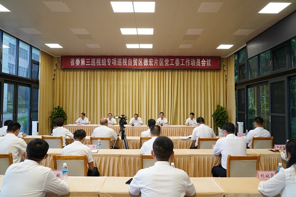按照省委統(tǒng)一部署,7月28日下午,省委第三巡視組專項巡視自貿(mào)區(qū)德宏片區(qū)黨工委工作動員會召開。會前,巡視組組長程猛主持召開與德宏州委常委、瑞麗市委書記、瑞麗試驗區(qū)黨工委副書記兼自貿(mào)試驗區(qū)德宏片區(qū)黨工委書記毛曉的見面溝通會,通報了巡視任務(wù),提出了工作要求;巡視組副組長謝添才傳達了省委書記王寧聽取巡視工作有關(guān)情況匯報時的講話要求。會上,程猛作了動員講話;謝添才通報了干擾、對抗巡視的一些典型問題;毛曉主持會議并作表態(tài)發(fā)言。